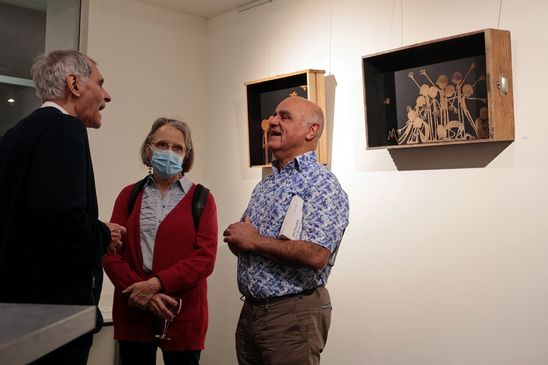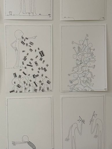 Unumwunden und unverhüllt erzählen Maja Kopps Figuren vom Grossen und Kleinen, von Gemeinschaft und Individuum. Im Zetnrum ihres Schaffens steht der Mensch in all seiner Verletzlichkeit und Kraft, während zwischen Witz und Metaphernreichtum auch immer wieder eine tiefe Wertschätzung für Tiere und Natur durchschimmert. Neben zarten Papierzeichnungen dienen Kopp antike Schubladen als ungewöhnliche Bildträger, die nun bis Anfang 2026 ihre verborgenen Schätze im GundeliDräff offenbaren. Mit schwarzer Farbe markiert die Künstlerin dabei das Unsichtbare – den Raum zwischen den Figuren – und legt so auf subtile Weise wortwörtlich das Zwischenmenschliche frei. Feinsinnig, humorvoll, unumwunden lädt die Ausstellung noch bis zum 31. Januar 2026 im GudeliDräff zum Hinsehen, Nachdenken und Entdecken ein.